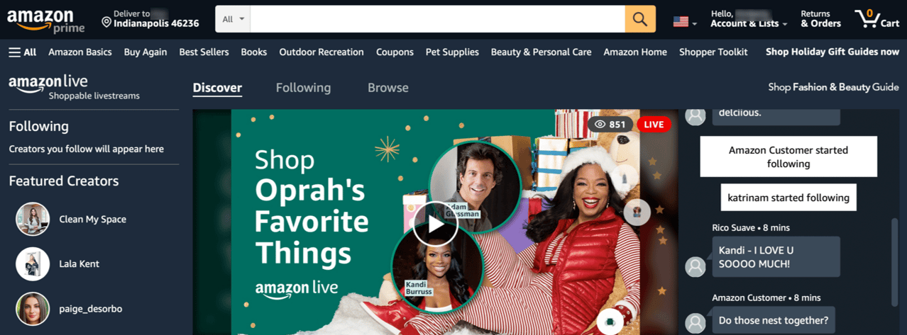 Llegar a la gran audiencia de Amazon Live y convertir a más espectadores en compradores. Más de 1000 millones de personas vieron contenido de Amazon Live el año pasado.