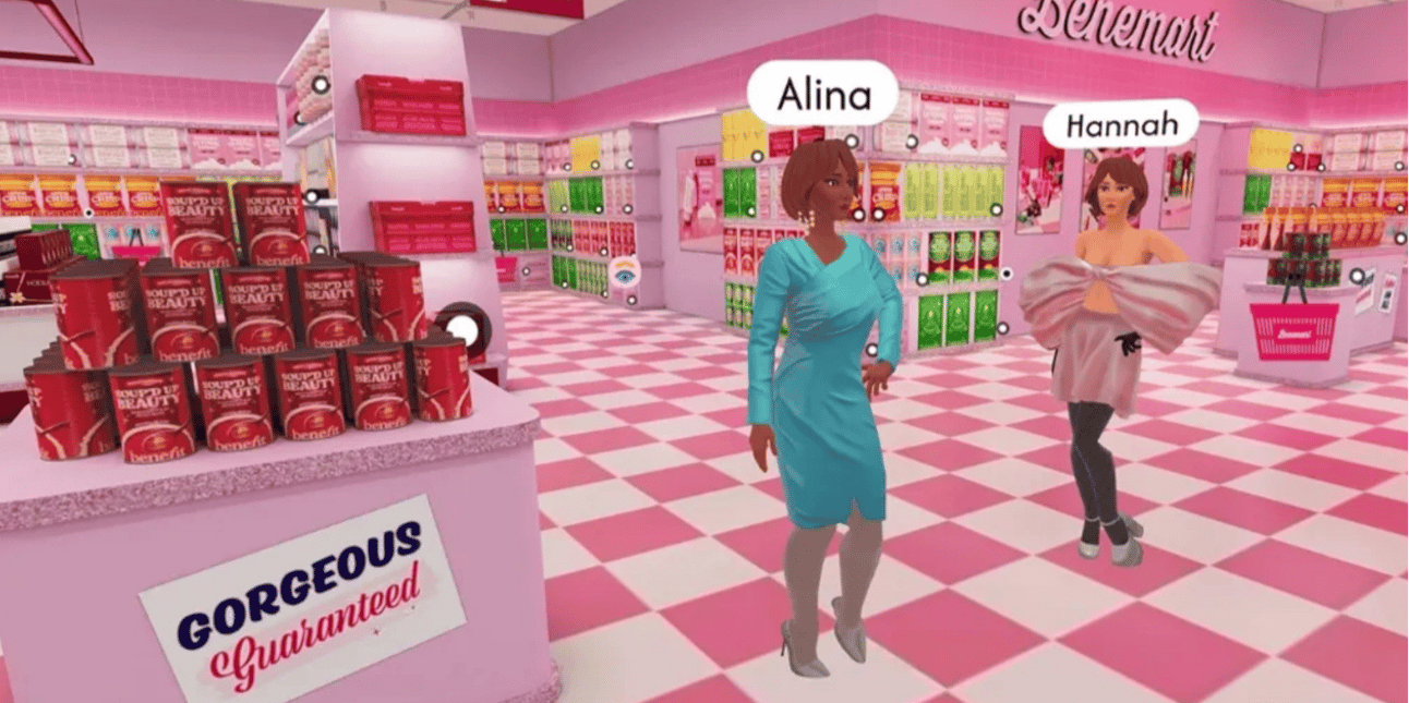 La marca de cosméticos Benefit Cosmetics se ha asociado con Obsess para lanzar su primera experiencia de compras virtual en 3D llamada “The Benemart”. Se trata de un espacio digital inspirado en una tienda de comestibles que está disponible actualmente en Estados Unidos, Alemania, Reino Unido y Francia.