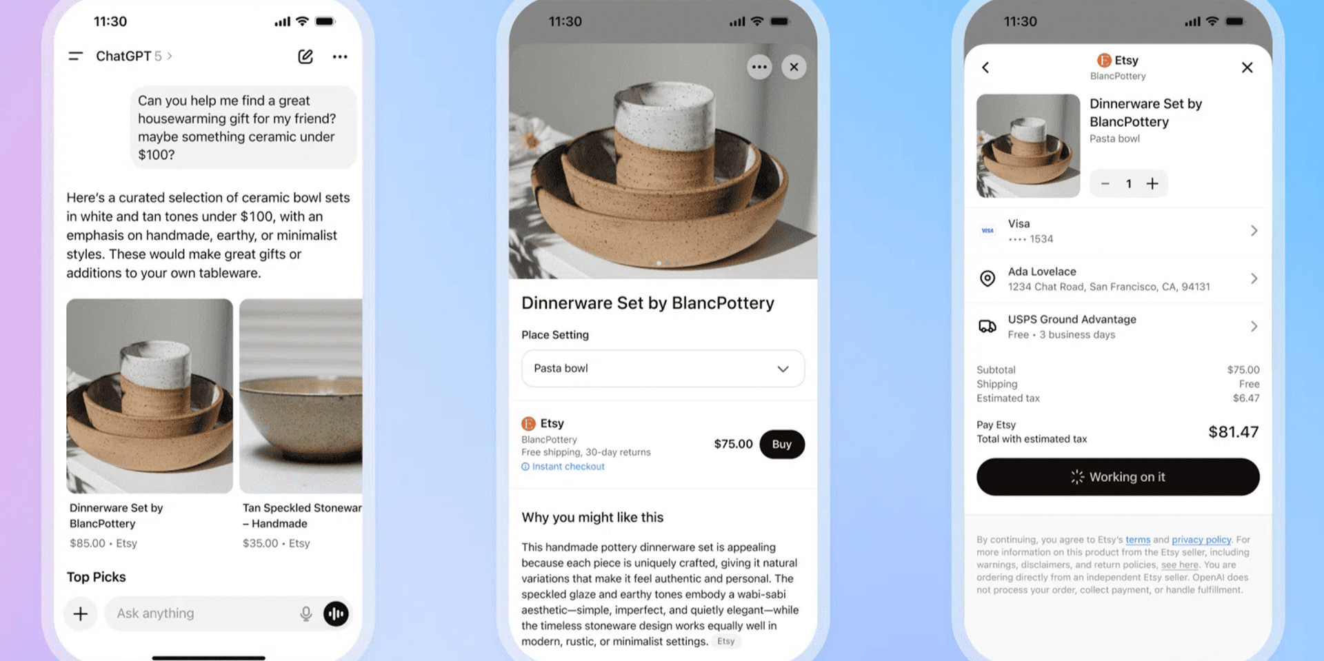 OpenAI lanzó Instant Checkout, una función para comprar directo dentro del chat. O sea, imagina estar platicando con la IA y de repente ¡zas! le compras algo ahí mismo.